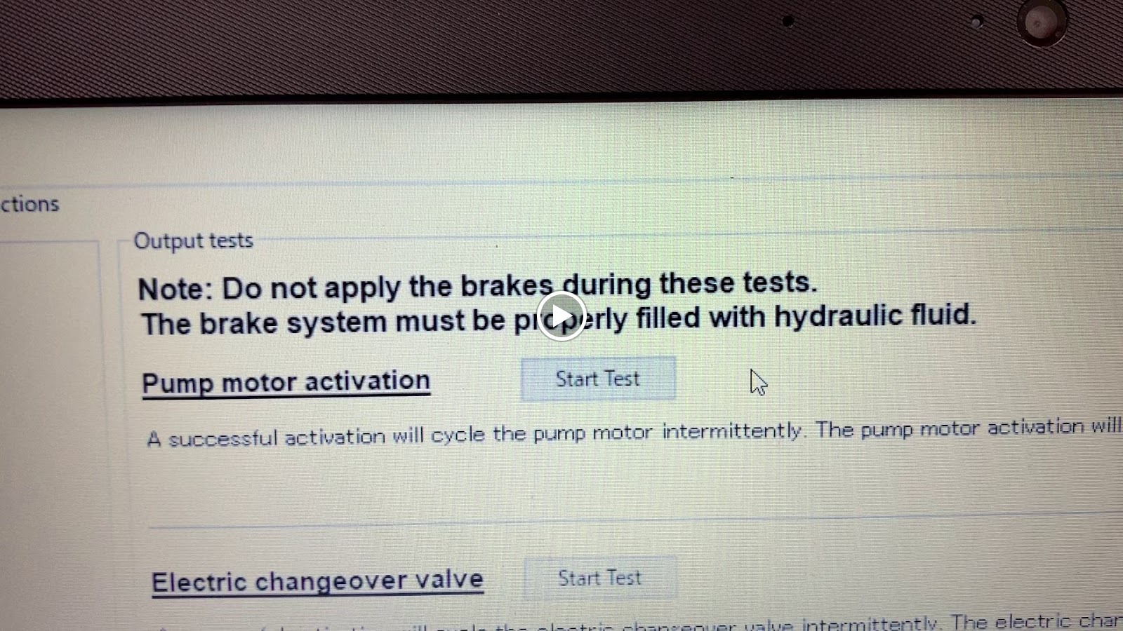 一度ブレーキラインのエアに気をしてから、GS911を使用してABSモーターのテスト。
